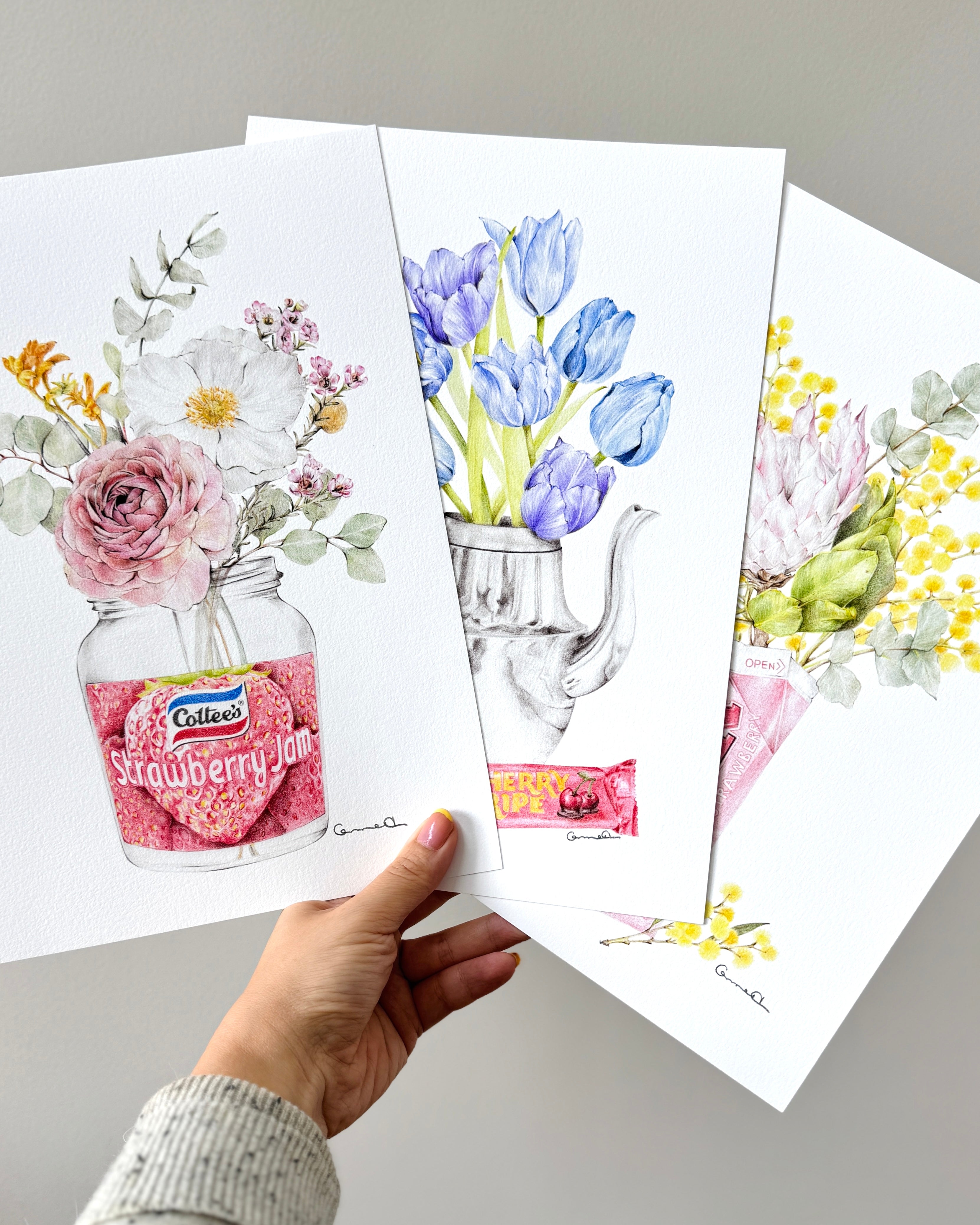 Discover our collection of Australian art prints, inspired by native flora, nostalgic keepsakes, and quiet everyday moments. Each piece is hand drawn with pencil, designed to bring warmth, memory and beauty into your home. Perfect for styling your space or gifting to someone special.