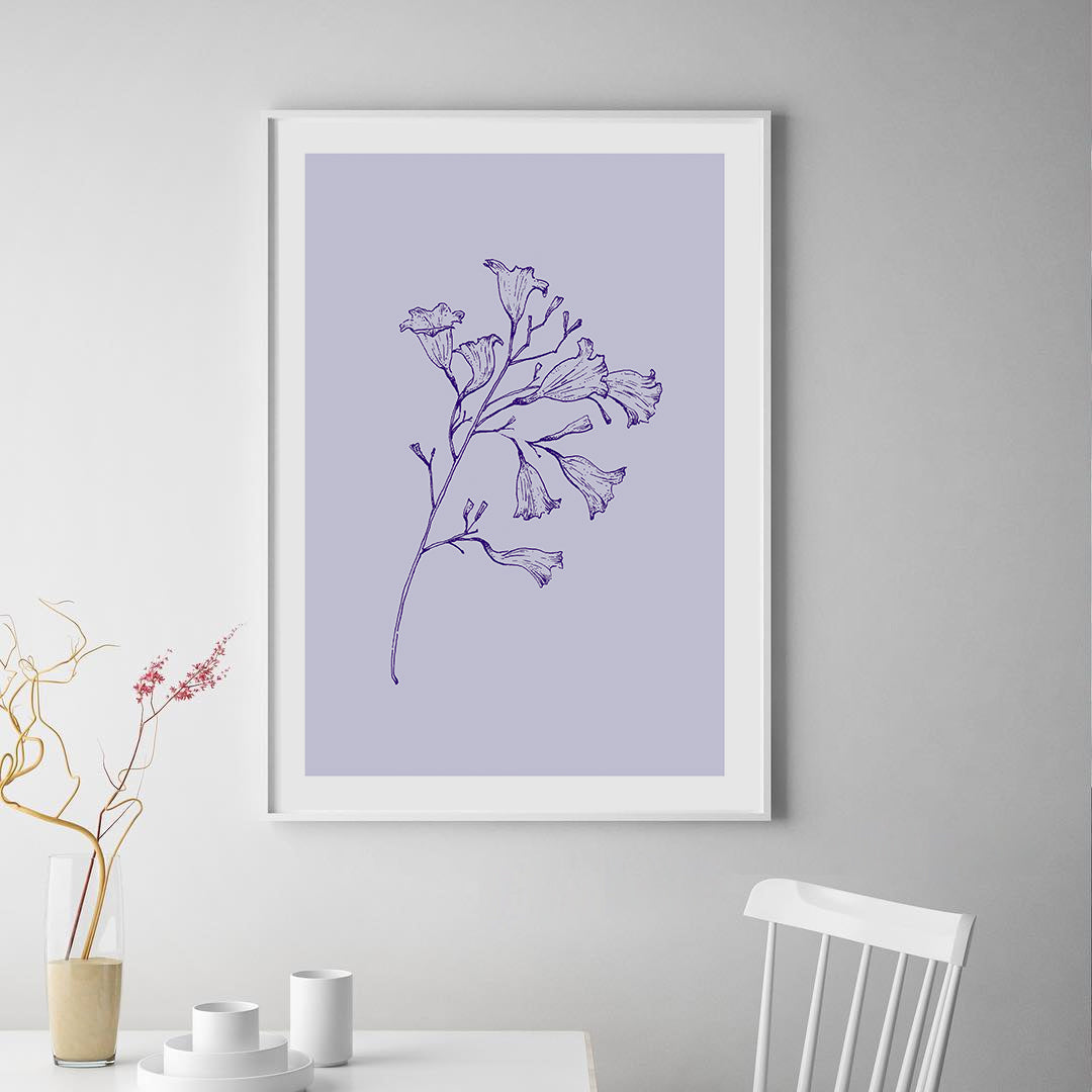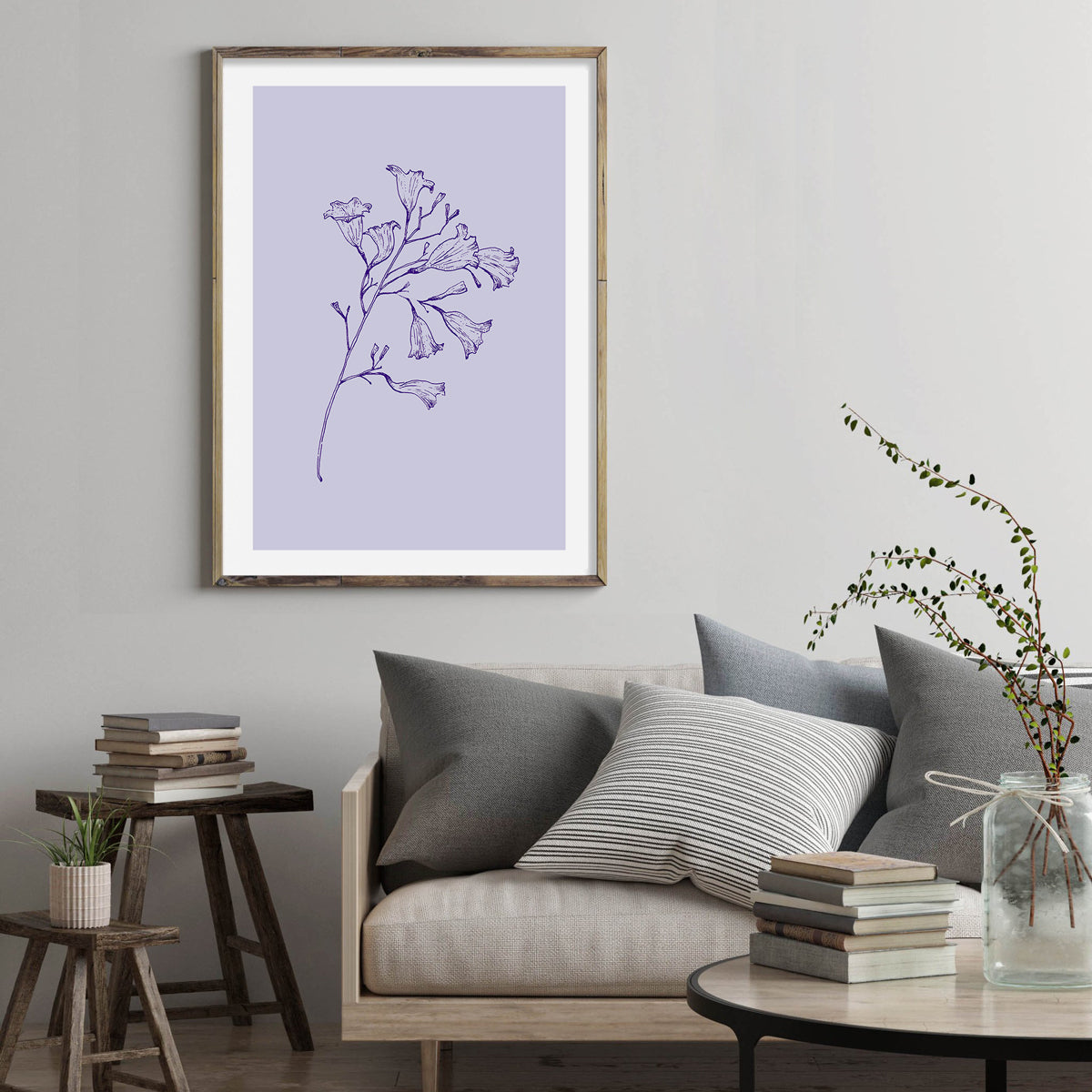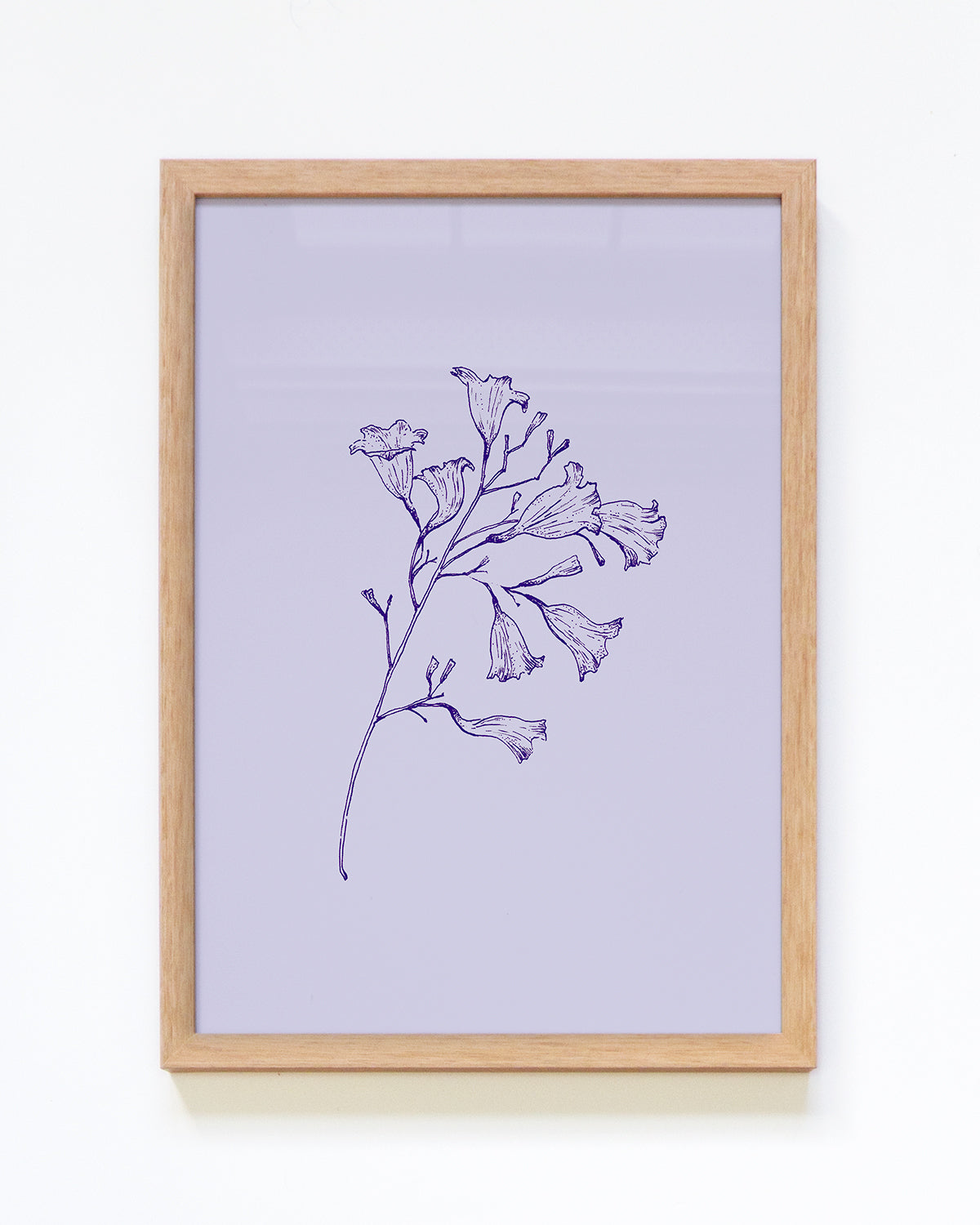 This is a reproduction of an original jacaranda drawing printed on museum archival quality 100% cotton rag art paper.