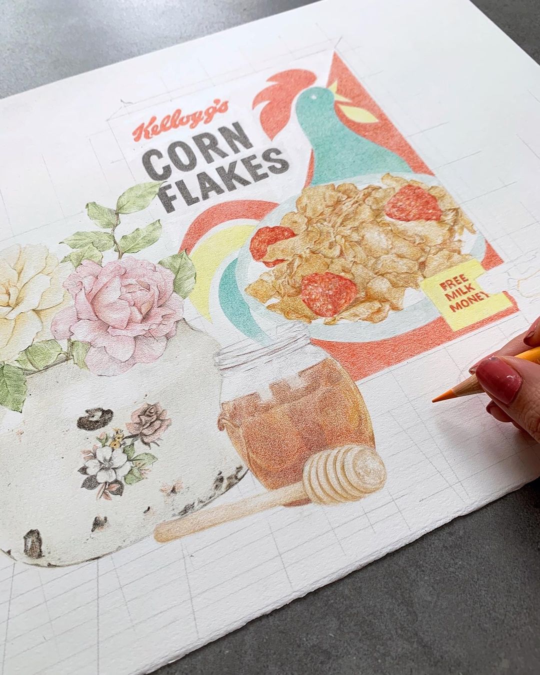 This is an original drawing created with Faber Castell Polychromos coloured pencils on 300gsm hot pressed watercolour paper.