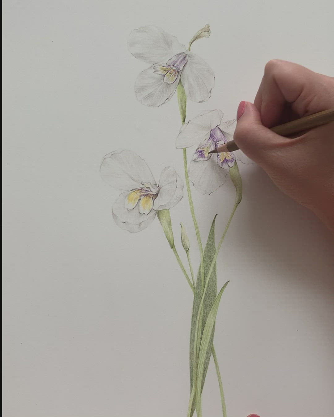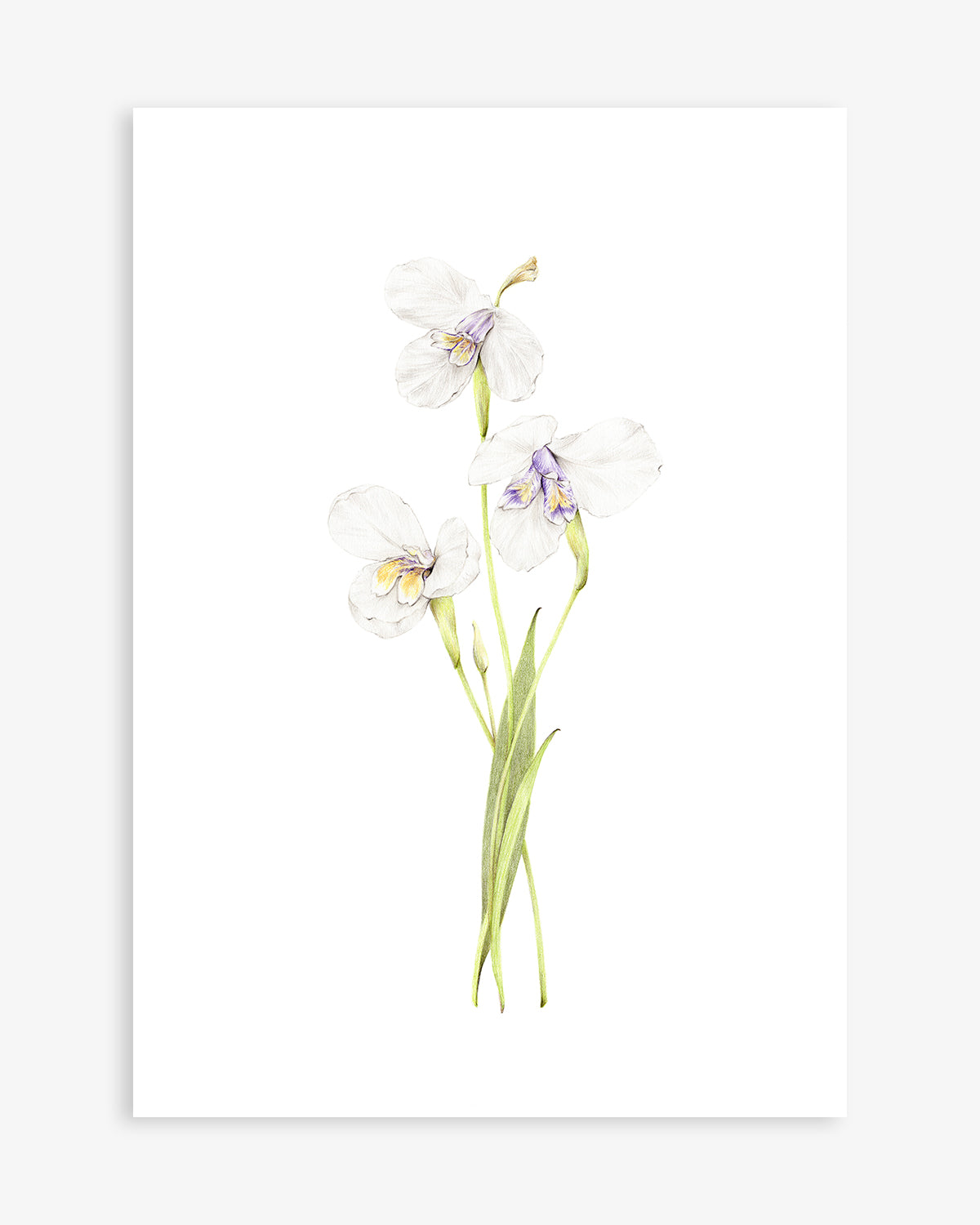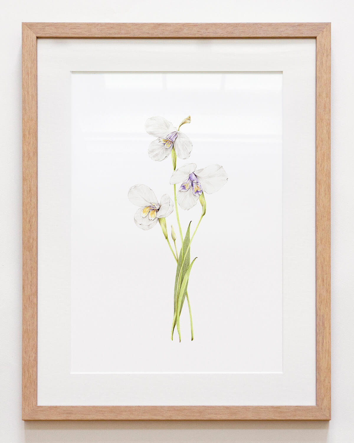 D is for Diplarrena Moraea is a limited edition print from the A - Z floral series. There are only 100 produced for each design and size. Once the edition has sold out it will not be reproduced again in that size. Click here to purchase the original drawing.