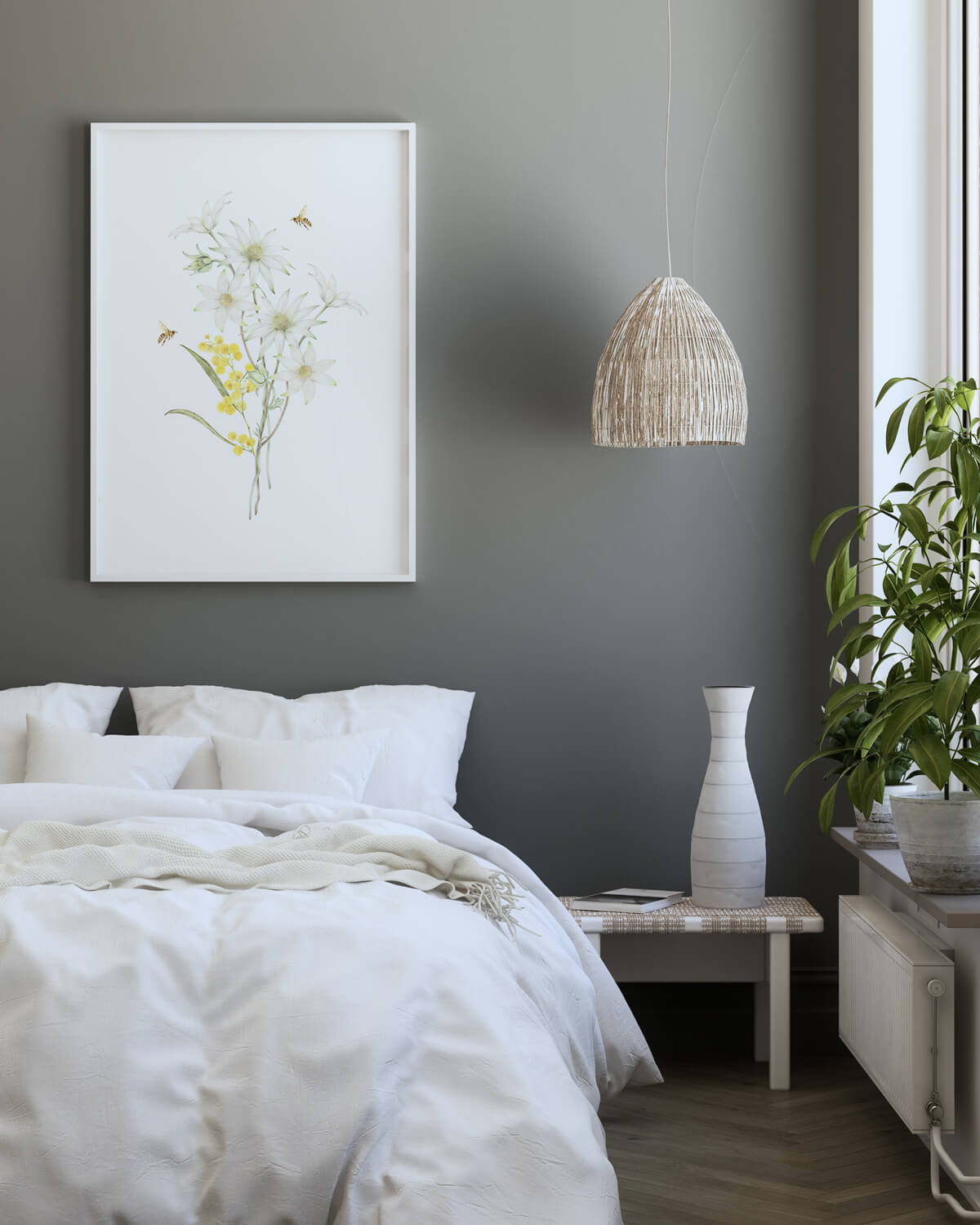 Note: IMG 02 shows the natural timber frame option, IMG 03 shows timber frame with mat board and IMG 04 is the hanger option. Lifestyle photos are styling suggestions only.