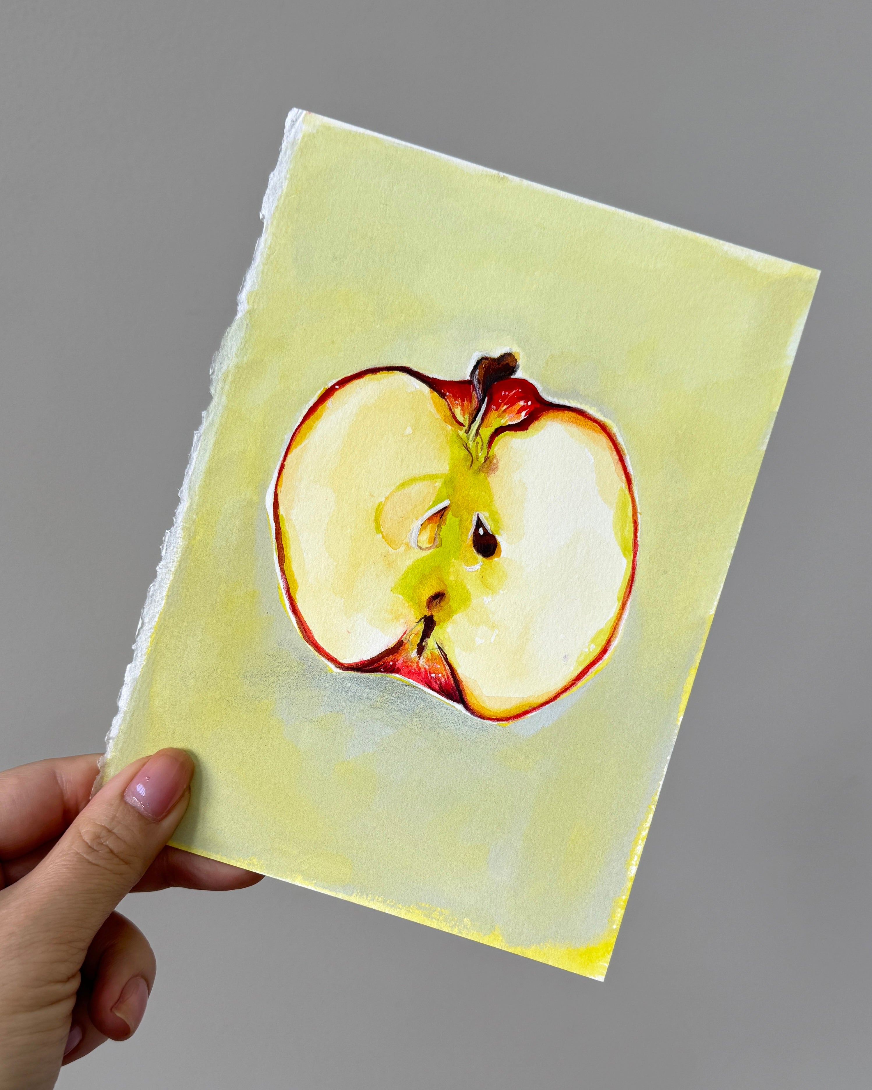Half of an Apple Gouache with Pencils Sketch