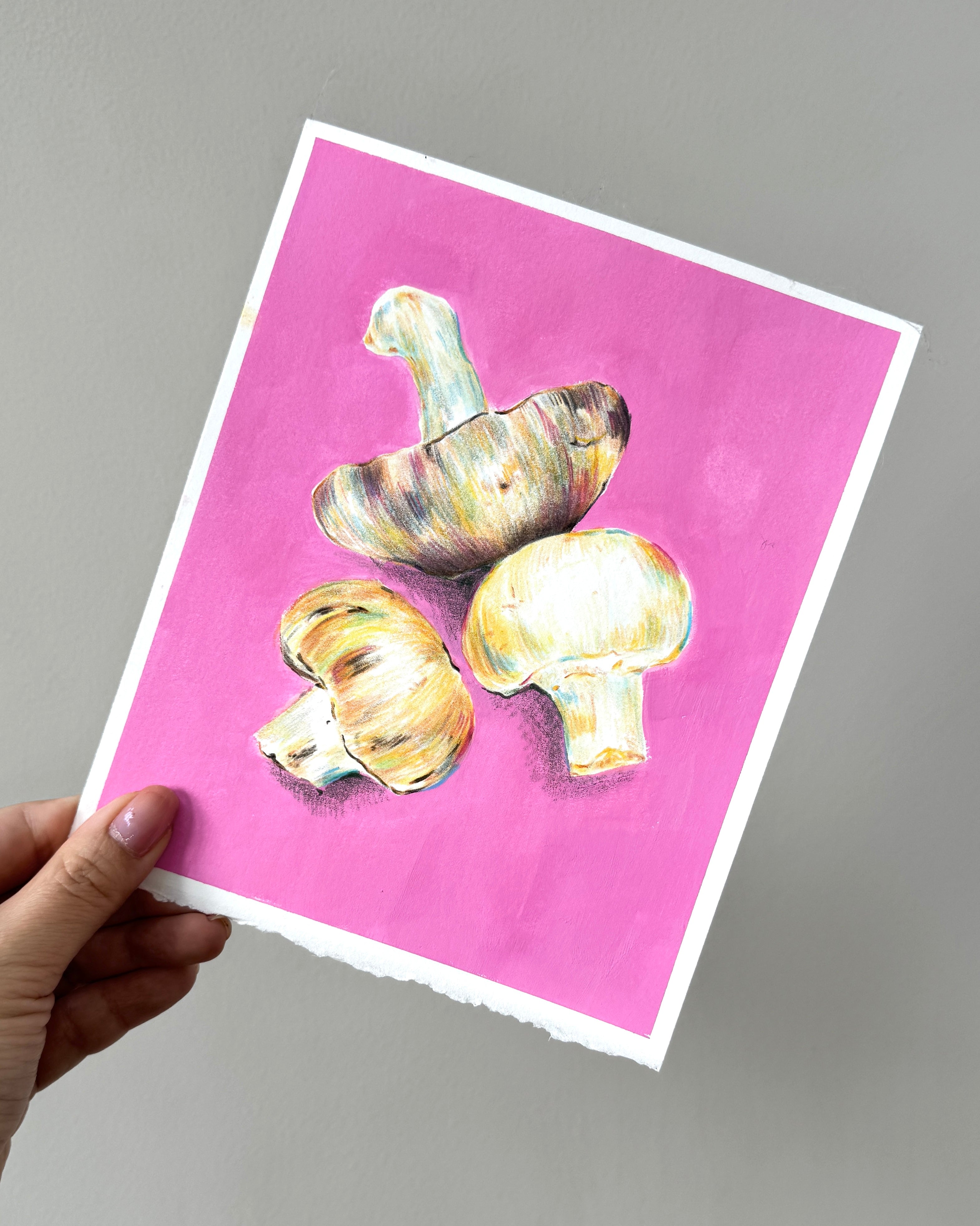 Mushrooms Gouache with Pencils Sketch