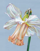 Bring a touch of quiet beauty into your home with this one of a kind daffodil artwork. Created in a looser botanical style, the single bloom rests on a soft dusty blue background, with gentle movement captured through minimal line work. It’s a study in simplicity, nostalgia, and the fleeting charm of nature.