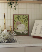 The pistachio green background, accented with eucalyptus leaves and gum nuts, adds a nostalgic yet modern touch, perfect for brightening up a cosy kitchen, dining nook, or anywhere you’d like a sprinkle of sweetness.