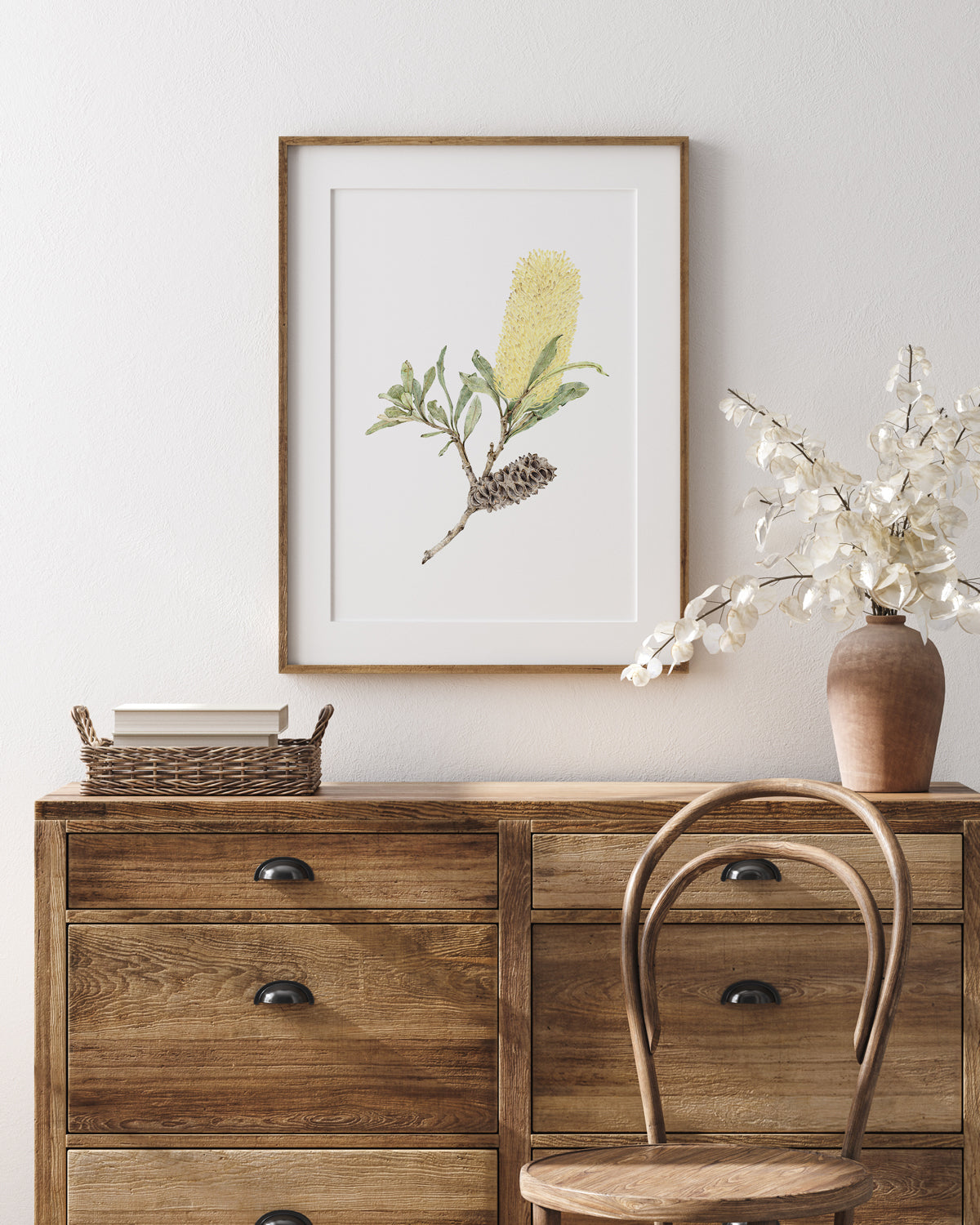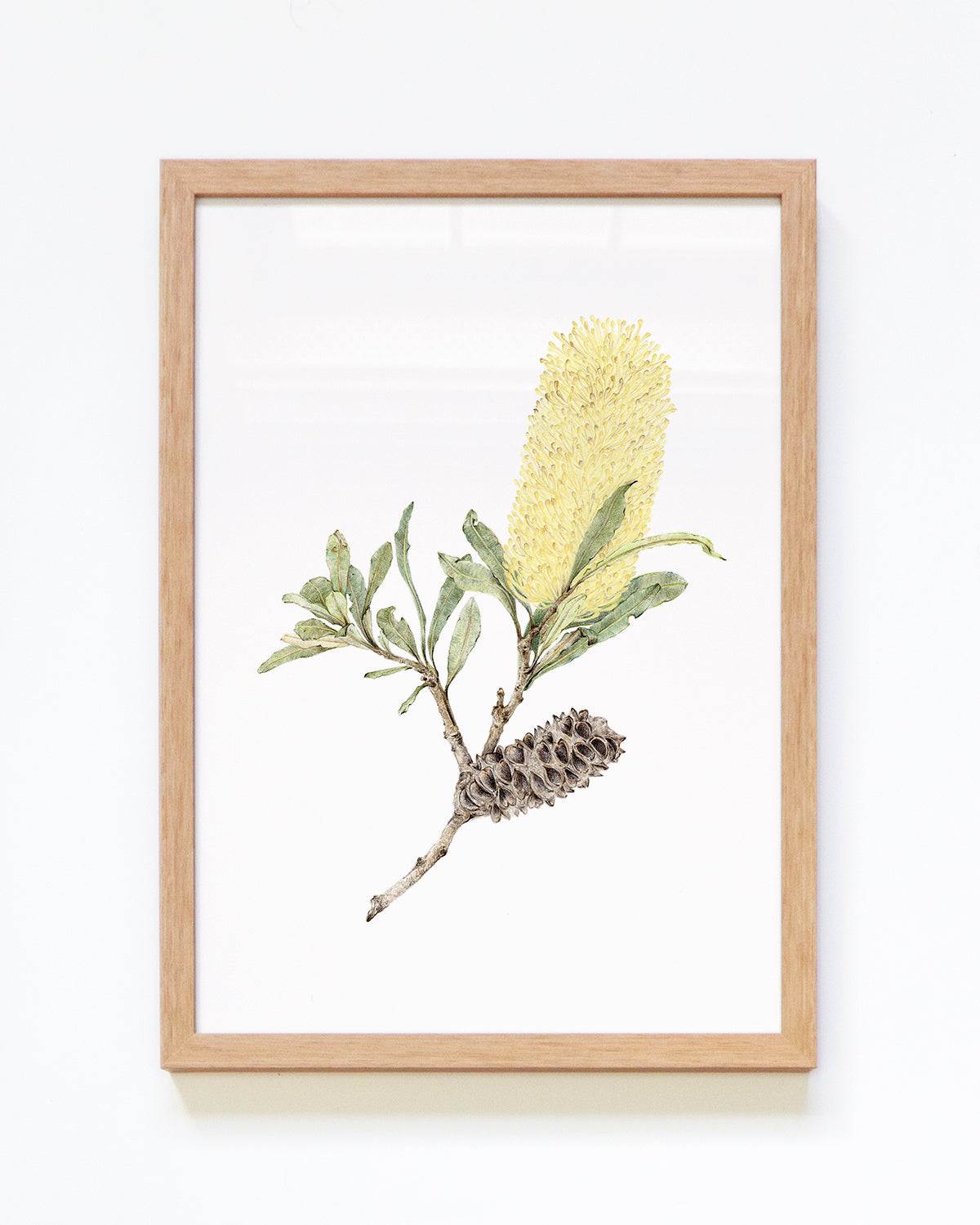 B is for Banksia is a limited edition print from the A - Z floral series. There are only 100 produced for each design and size. Once the edition has sold out it will not be reproduced again in that size. Click here to purchase the original drawing.