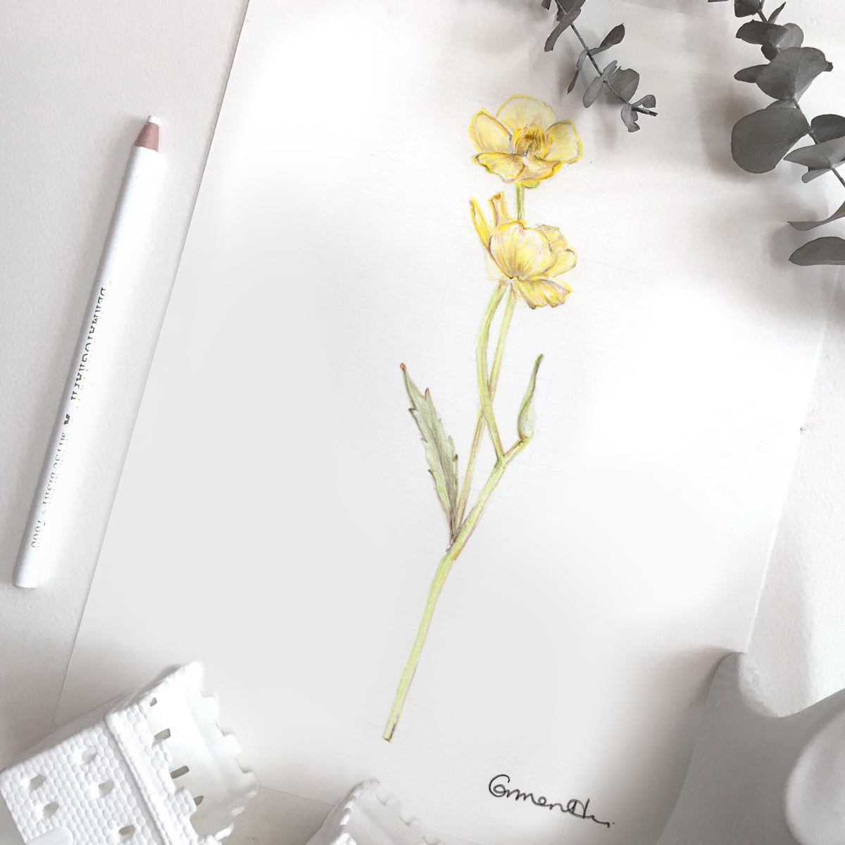 Unless specified, all original art are drawn with fade resist artist grade pencils on 300 gsm hot pressed watercolour paper.