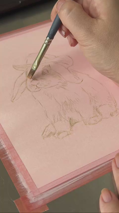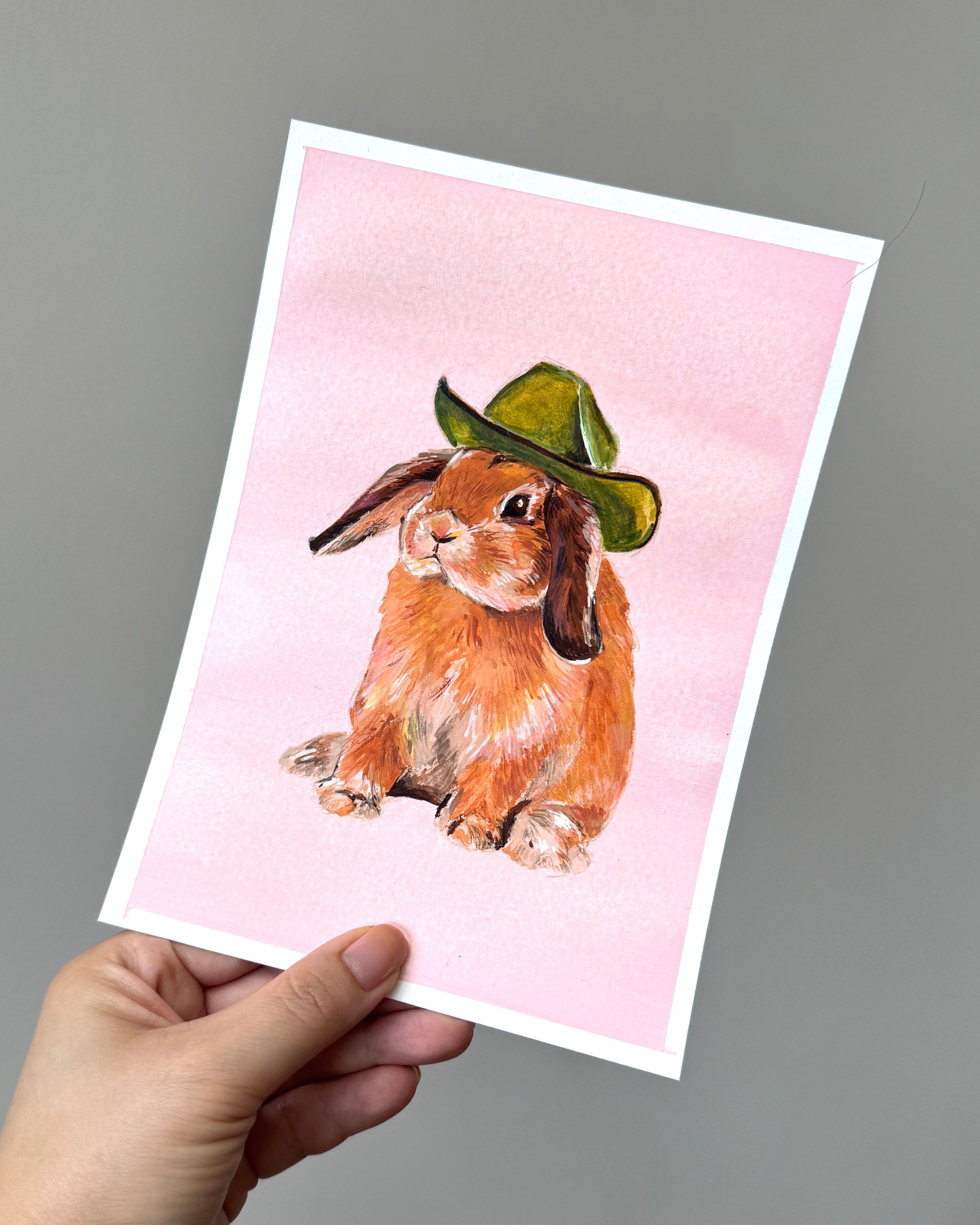 Meet the cowboy bunny who stole my weekend. This original mini painting was created with gouache and pencil, inspired by a gorgeous bunny shared by a lovely follower.
