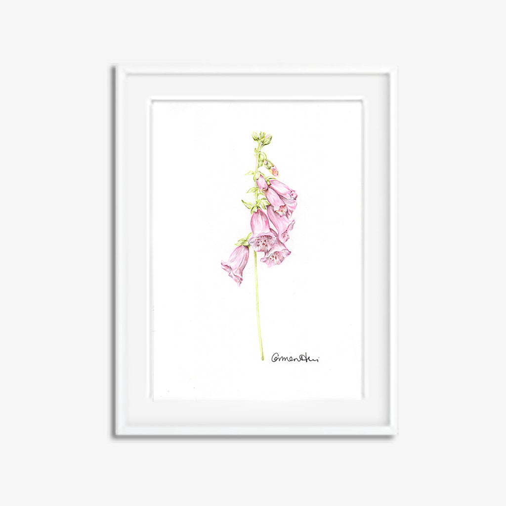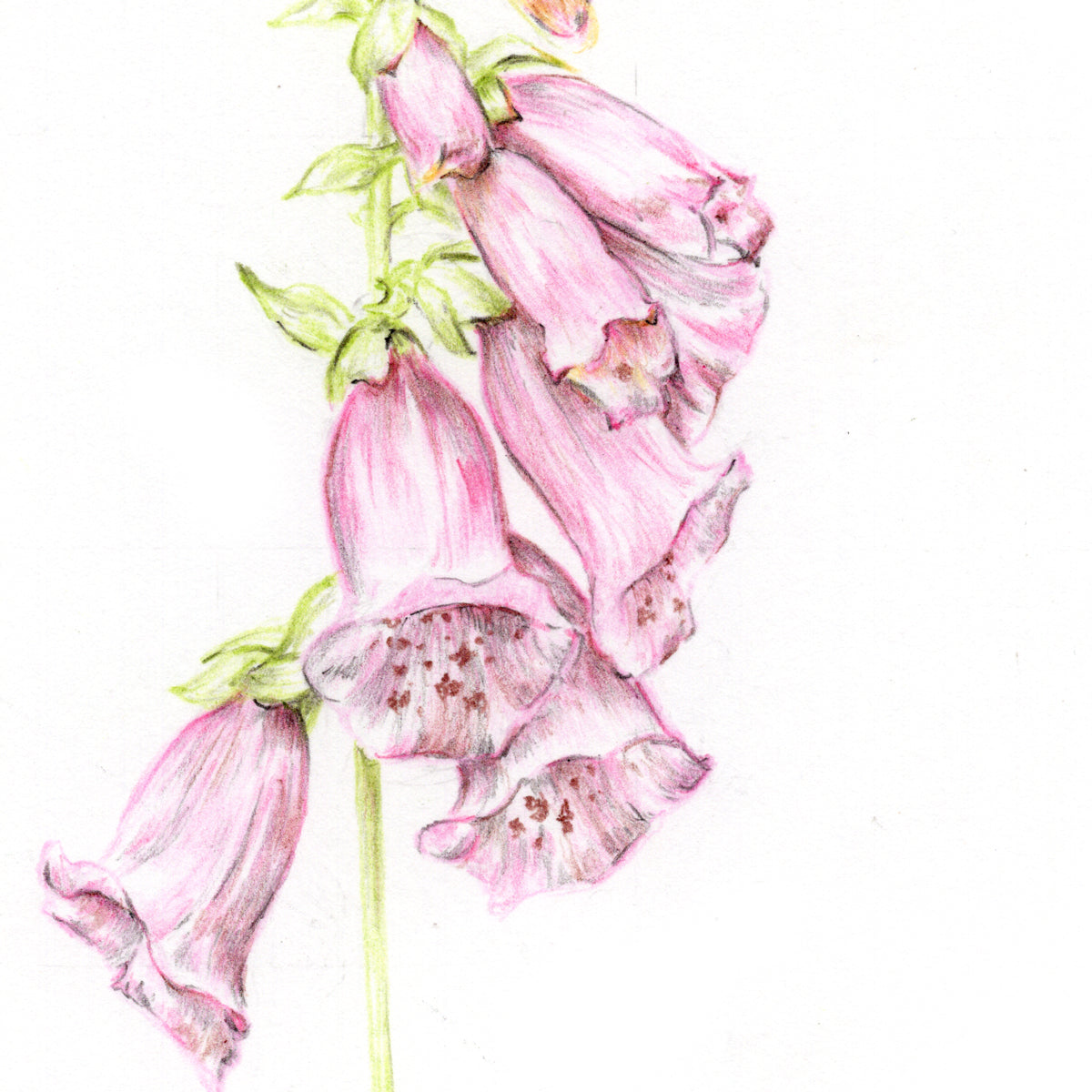 Original pencil drawing of a Foxglove, this drawing is from the 100 Days of Flowers projected completed in 2015.
