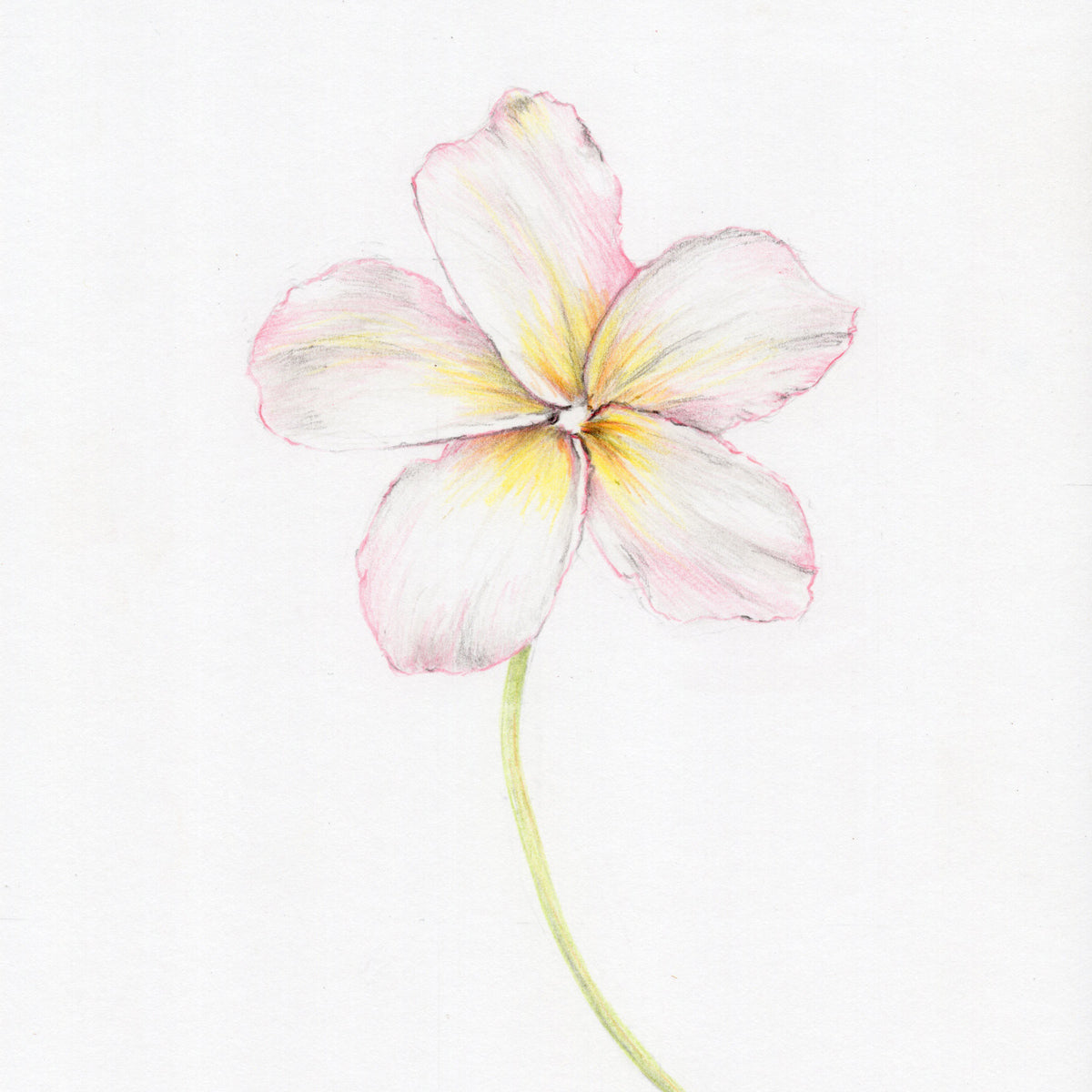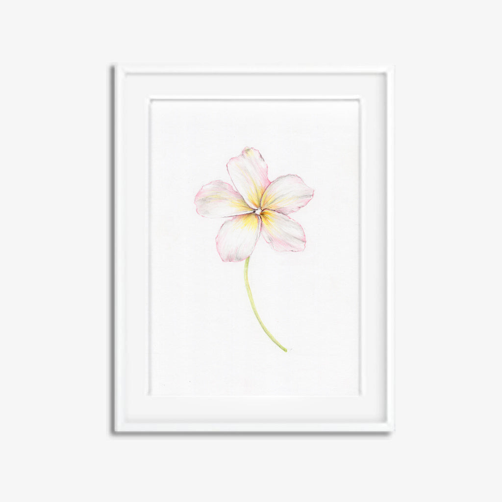Frangipanis are usually white, becoming more colourful the closer to the equator you go. In modern Polynesian culture, the frangipani can be worn by women to indicate their relationship status - over the right ear if seeking a relationship, and over the left if taken. This drawing is from the 100 Days of Flowers projected completed in 2015.
