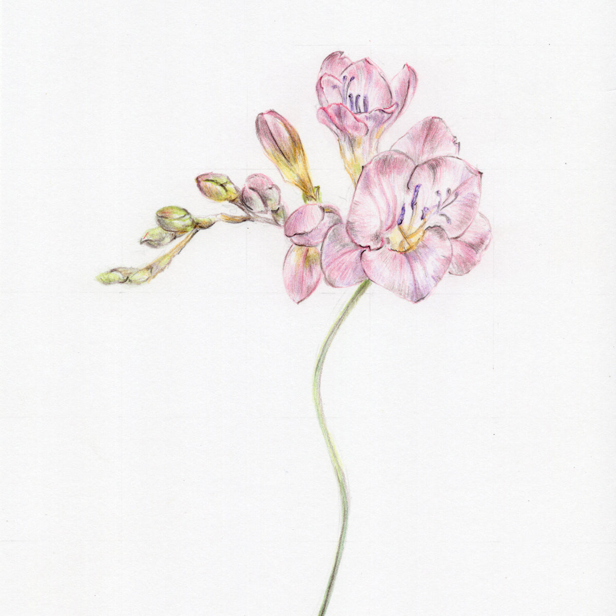 The freesia flower symbolises innocence, friendship as well as trust. This drawing is from the 100 Days of Flowers projected completed in 2015.