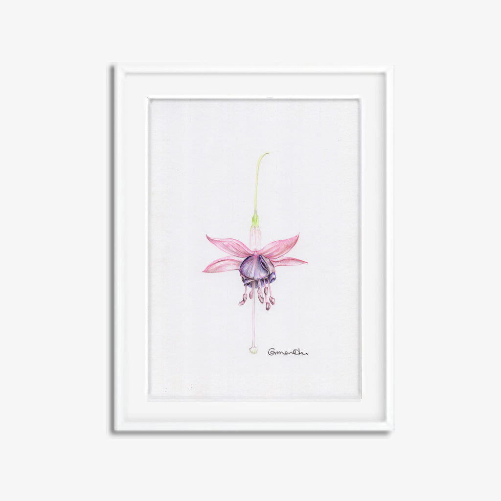 Original pencil drawing of a Fuschia, this drawing is from the 100 Days of Flowers projected completed in 2015.