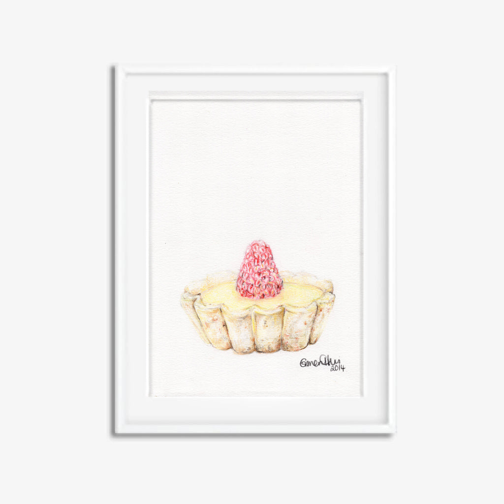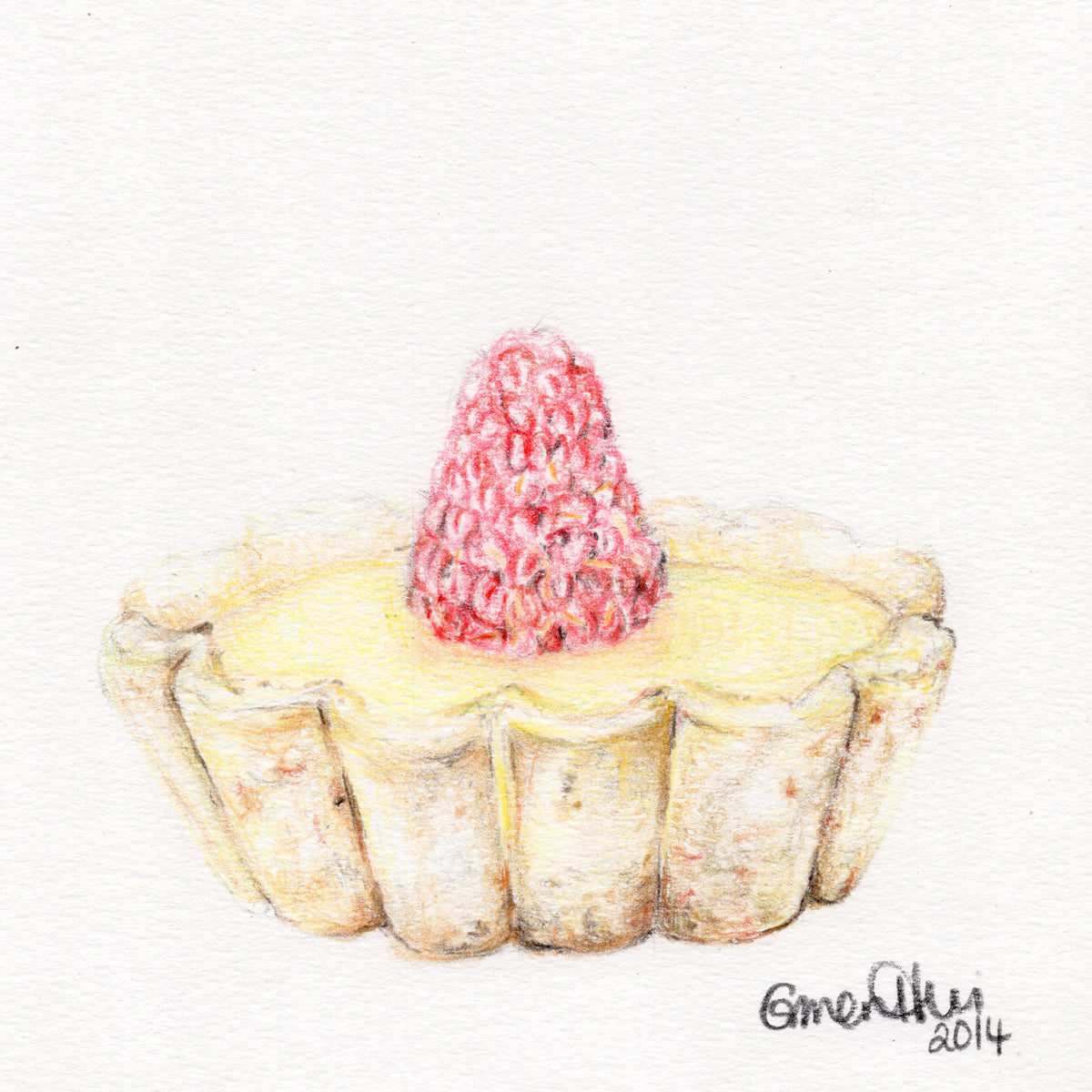 This is an original drawing of a lemon tart created with Faber Castell Polychromos coloured pencils on 250gsm artist paper.