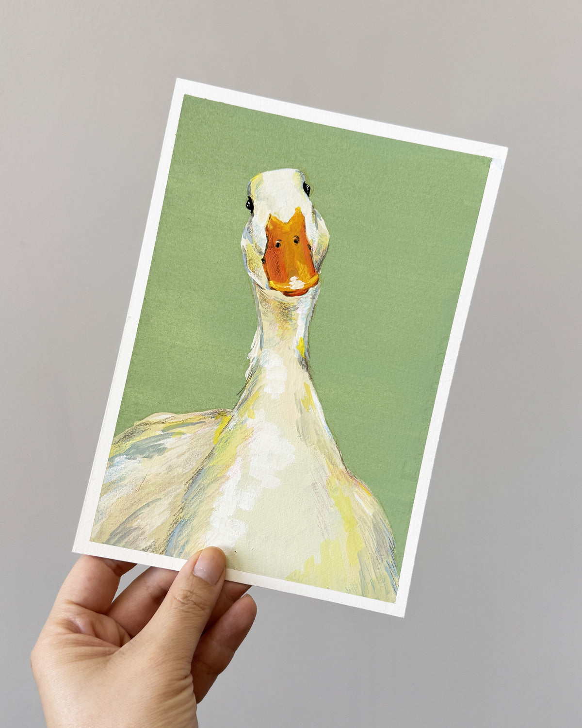 Created with gouache and pencil, this piece captures the inquisitive nature of a goose up close, its head and shoulders filling the frame as if it’s quietly judging your day (in the nicest way). The warm green background evokes sunlit paddocks, giving the piece a cozy, natural vibe. Owning the original means bringing a playful, one-of-a-kind piece into your home. Perfect for animal lovers, art collectors, or anyone who enjoys a little humour in their décor.