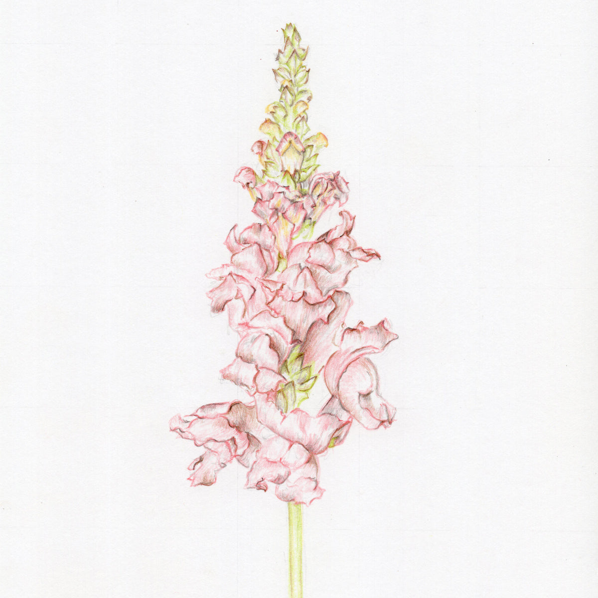 Legend has it that concealing a snapdragon makes a person appear fascinating and cordial. This drawing is from the 100 Days of Flowers projected completed in 2015.