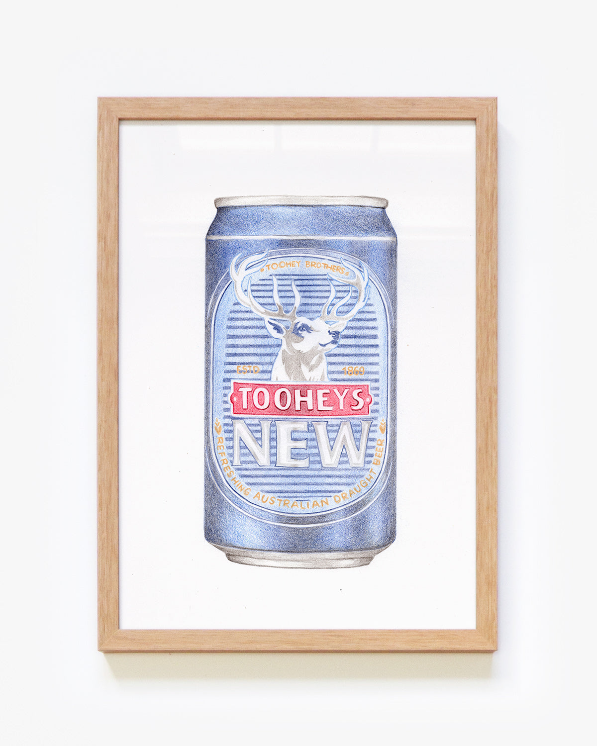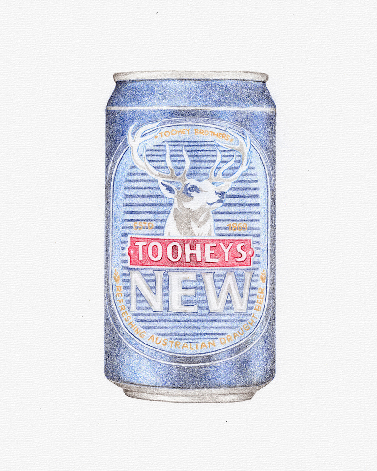This is an original pencil drawing of a Tooheys New beer can. Created with Faber Castell Polychromos coloured pencils on 300gsm hot pressed watercolour paper. Drawn in 2022.