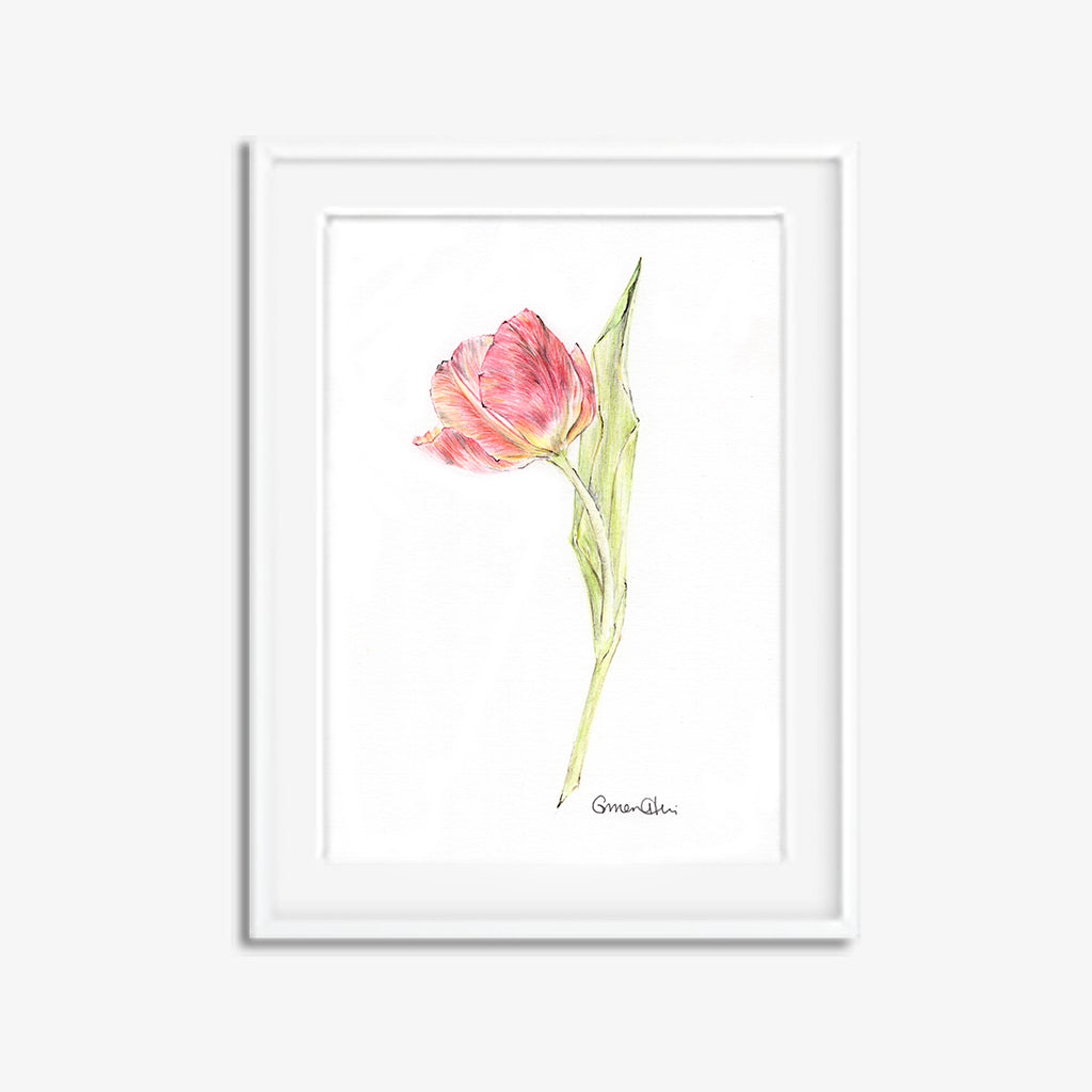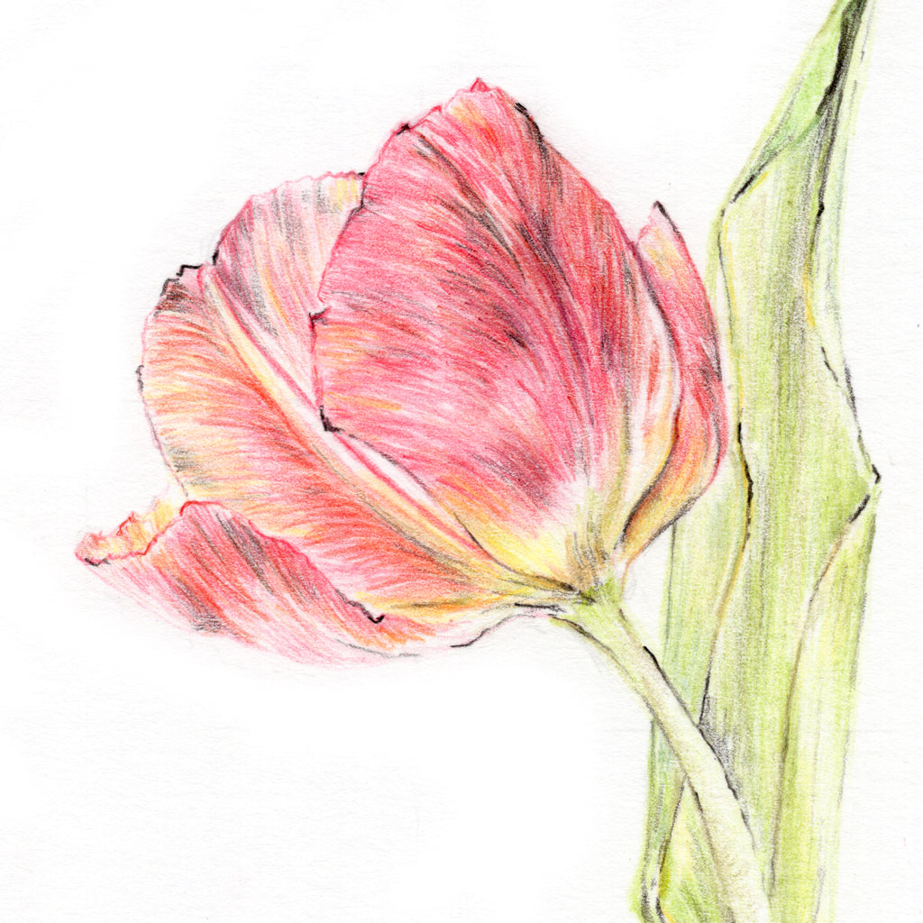 Original pencil drawing of a Tulip, this drawing is from the 100 Days of Flowers projected completed in 2015.