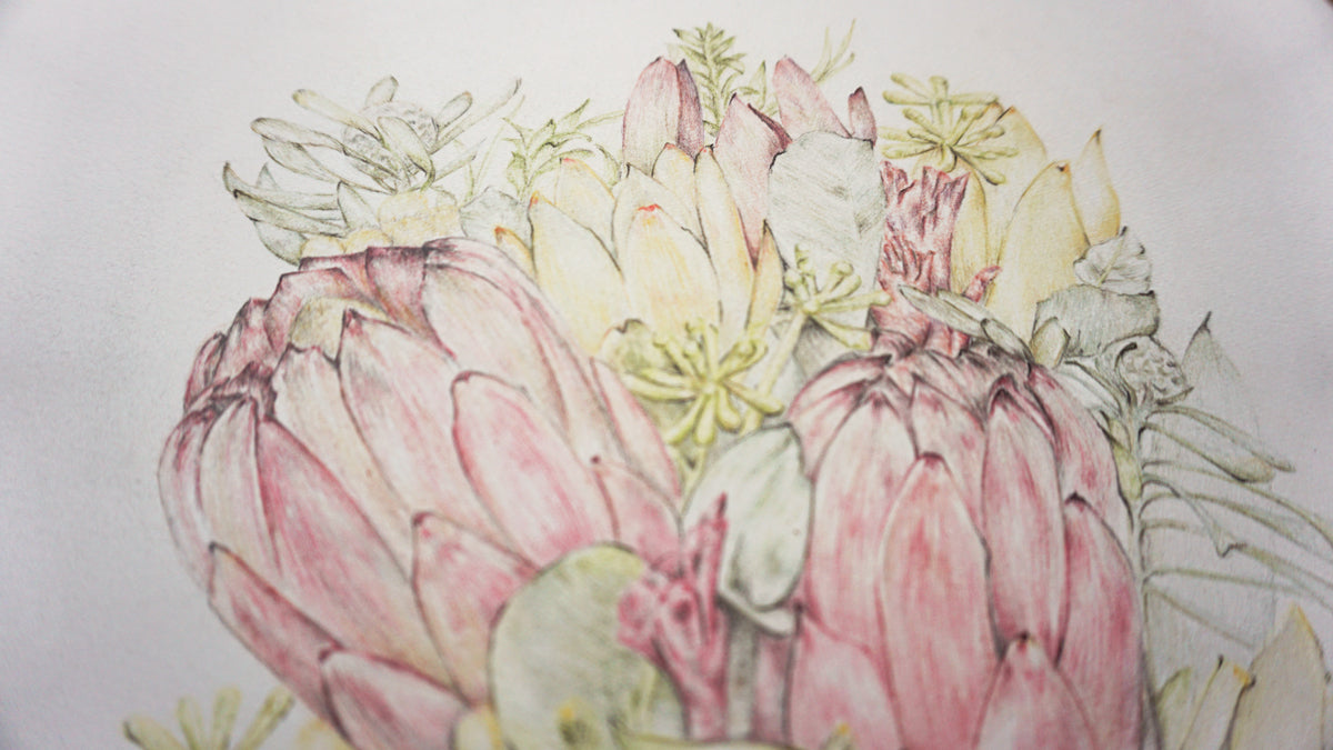 This is an original drawing created with Faber Castell Polychromos coloured pencils on 300gsm hot pressed watercolour paper.