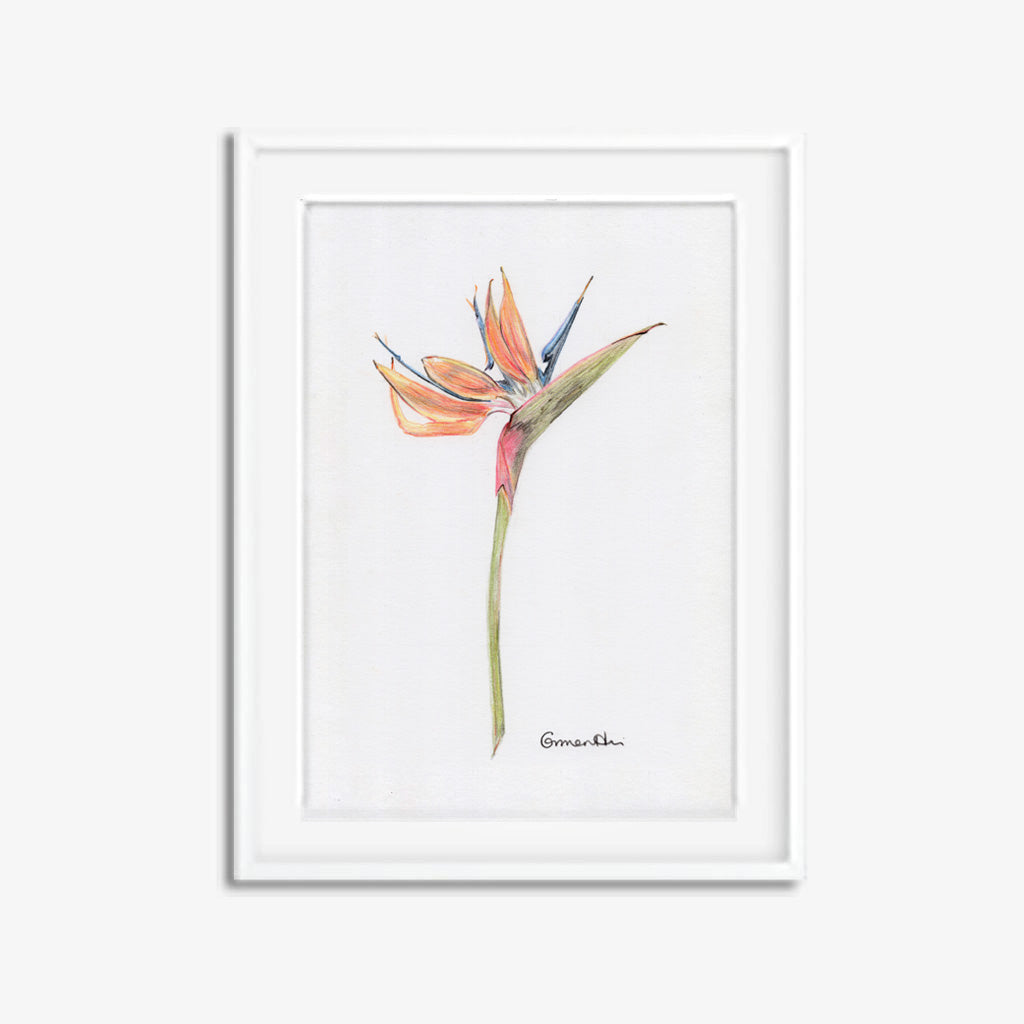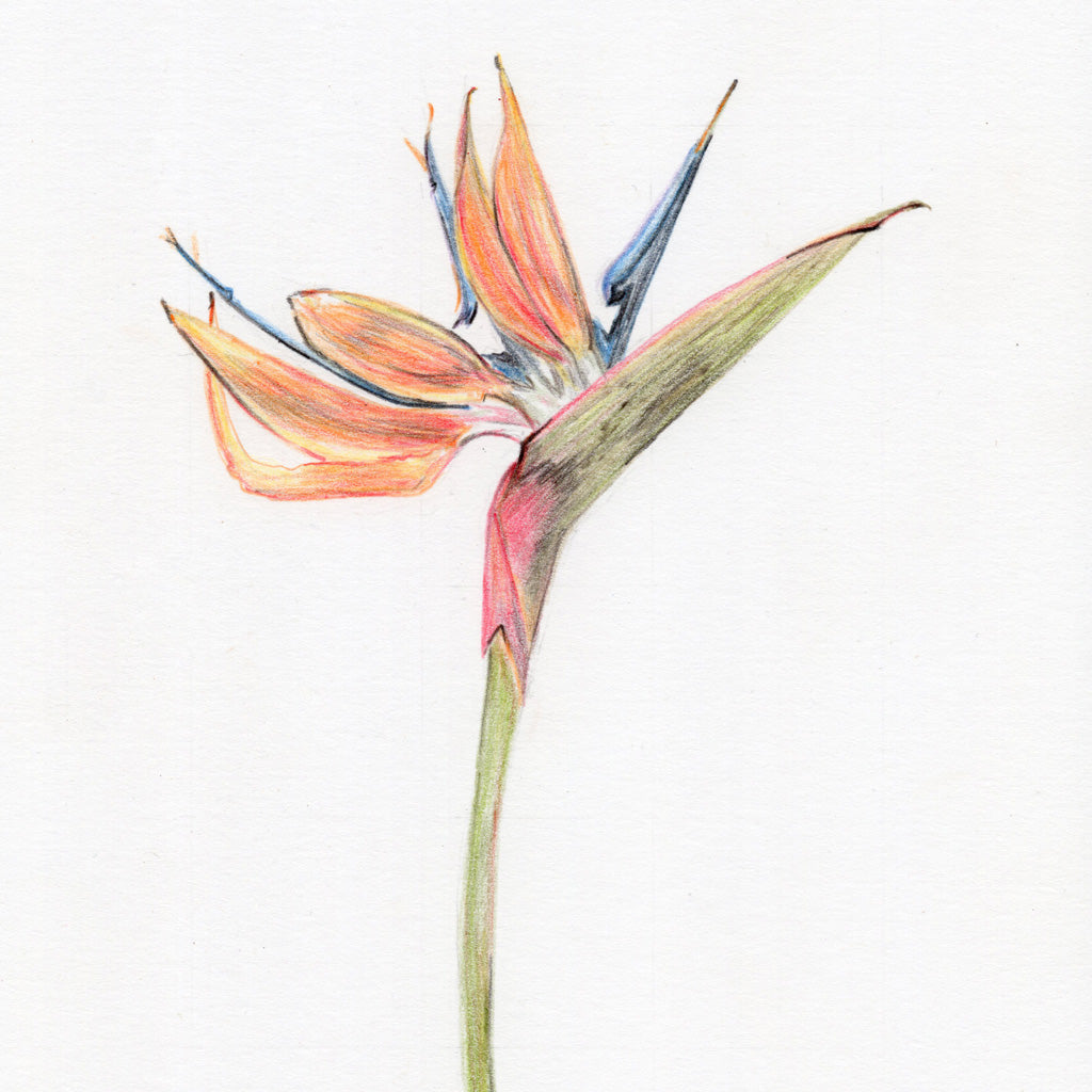 Original pencil drawing of a Bird of Paradise, this drawing is from the 100 Days of Flowers projected completed in 2015.