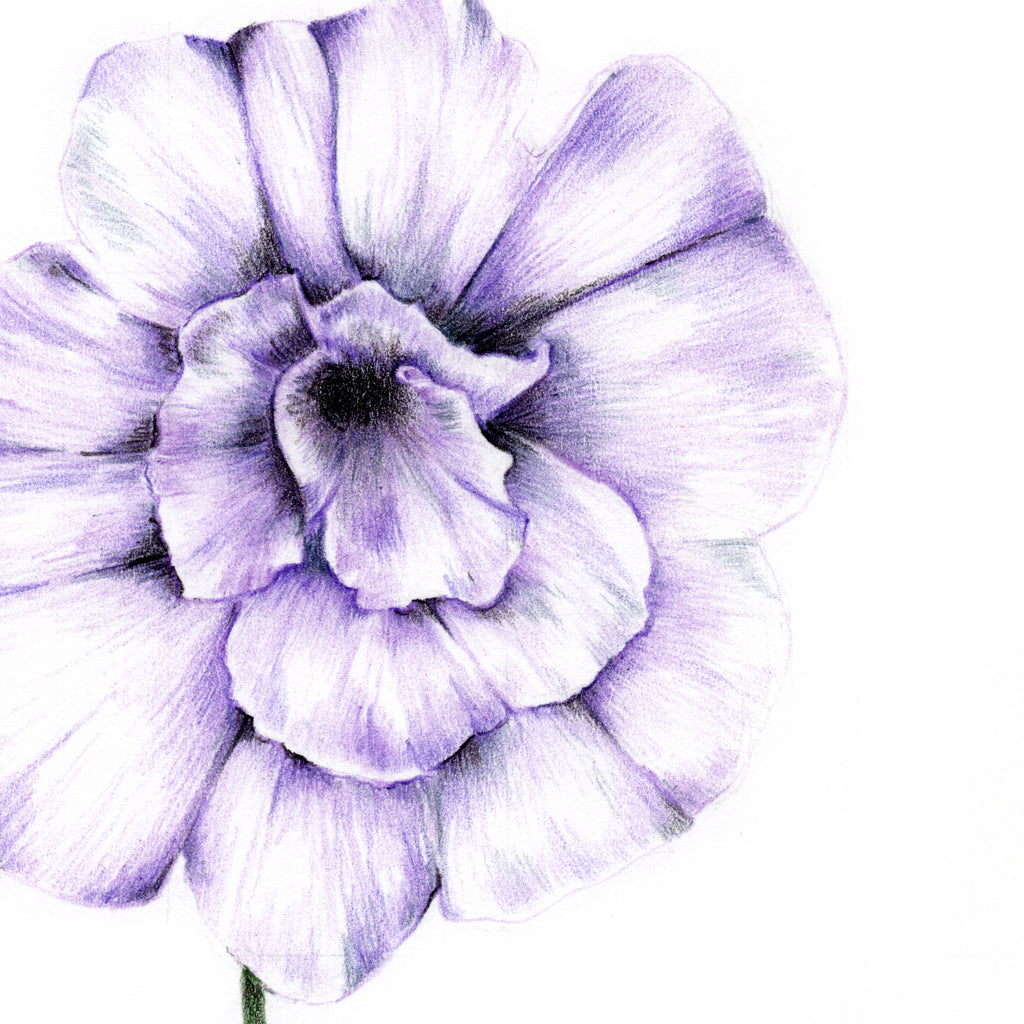 Original pencil drawing of a Double Calibrachoa, this drawing is from the 100 Days of Flowers projected completed in 2015.