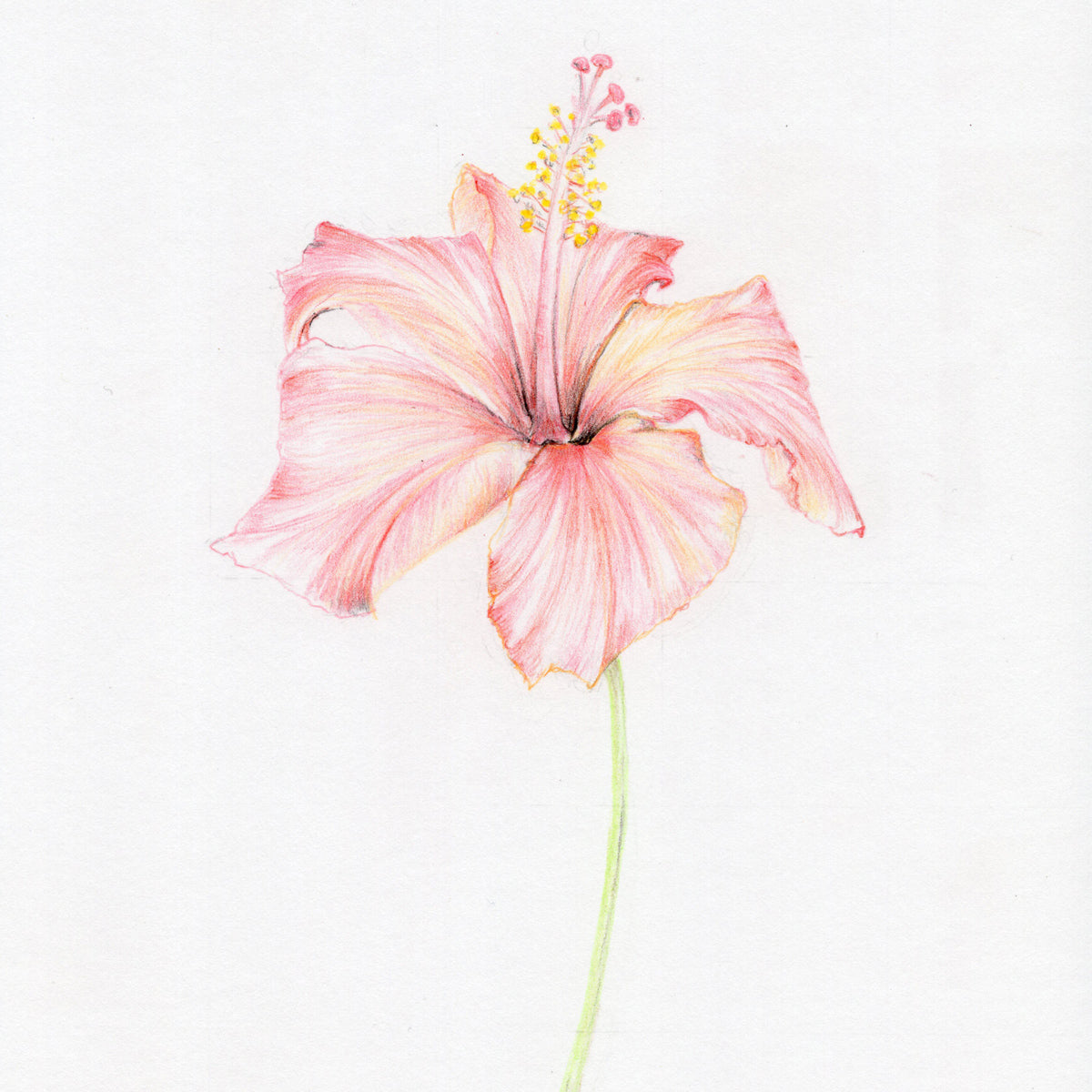 Dating to the Victorian era, the hibiscus means 'delicate beauty', relating to the sunny and delicate conditions under which it will bloom and to the fragility and beauty of its flower. This drawing is from the 100 Days of Flowers projected completed in 2015.