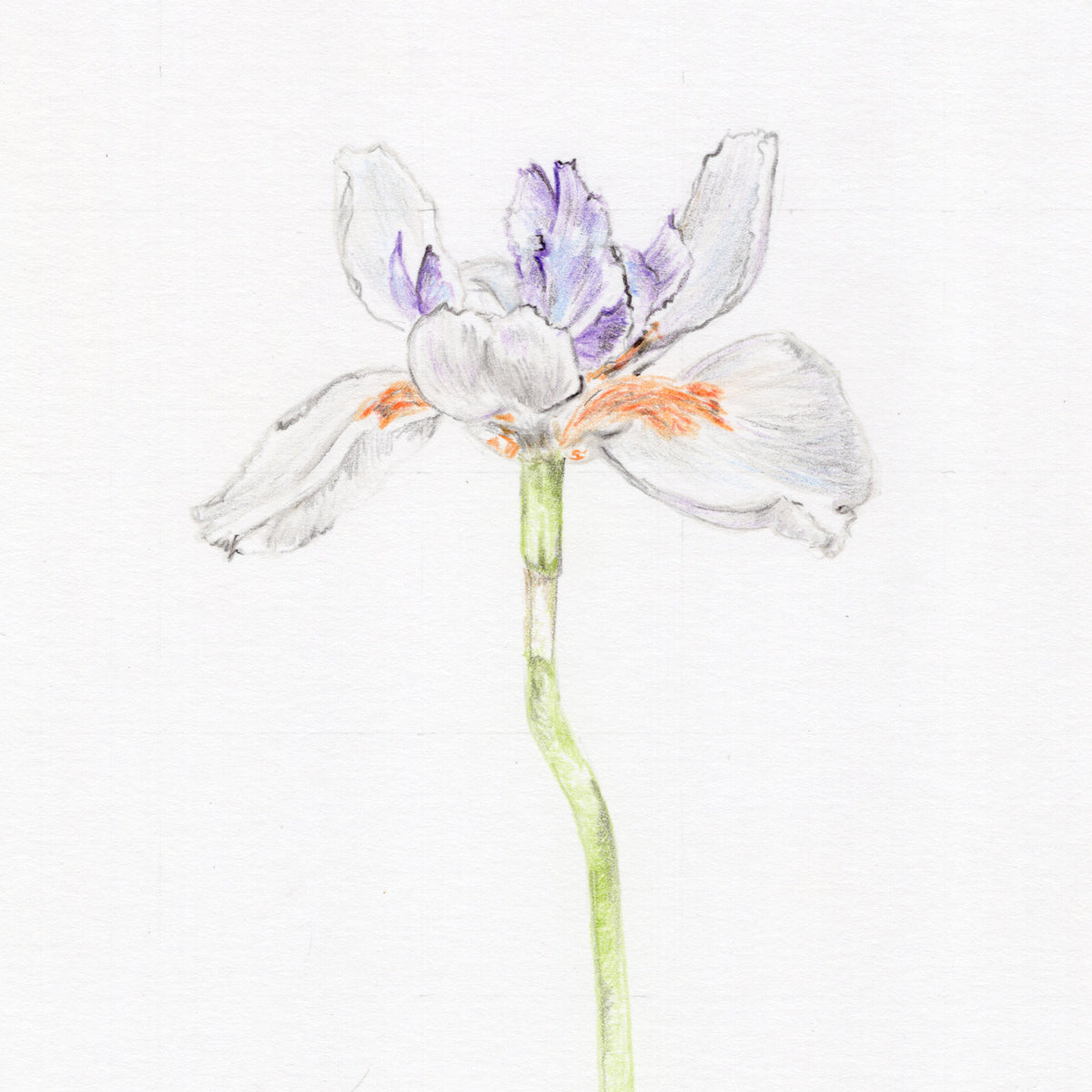 The iris got its name from the Greek goddess of the rainbow. She was the messenger of the gods, and would ride on the rainbow to and from the earth in her beautiful multi-coloured robes. This drawing is from the 100 Days of Flowers projected completed in 2015.