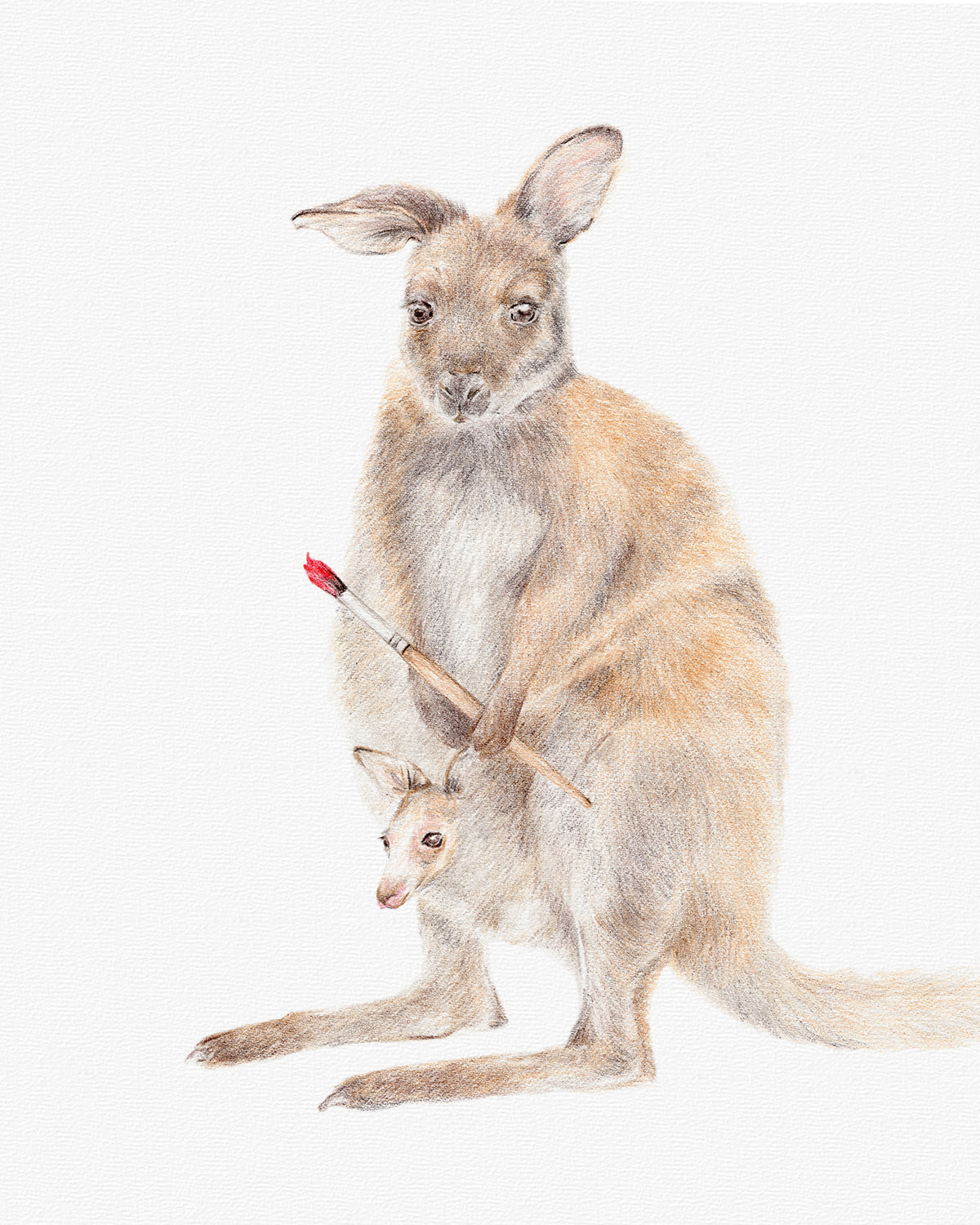 Immerse yourself in the whimsical world of Australian wildlife with our original art featuring a kangaroo with joey. Drawn with coloured pencils, this original art showcases the beauty of Australian native animals in a whimsical and enchanting way.