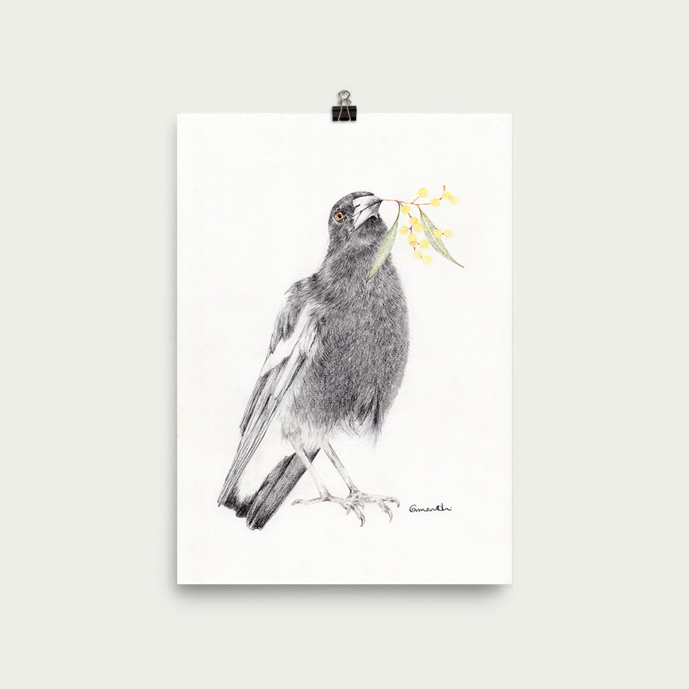 A reproduction of an original pencil drawing printed on museum archival grade, 310gsm cotton rag art paper with a slight texture. All art prints are made to order using Giclee fine art printing methods.