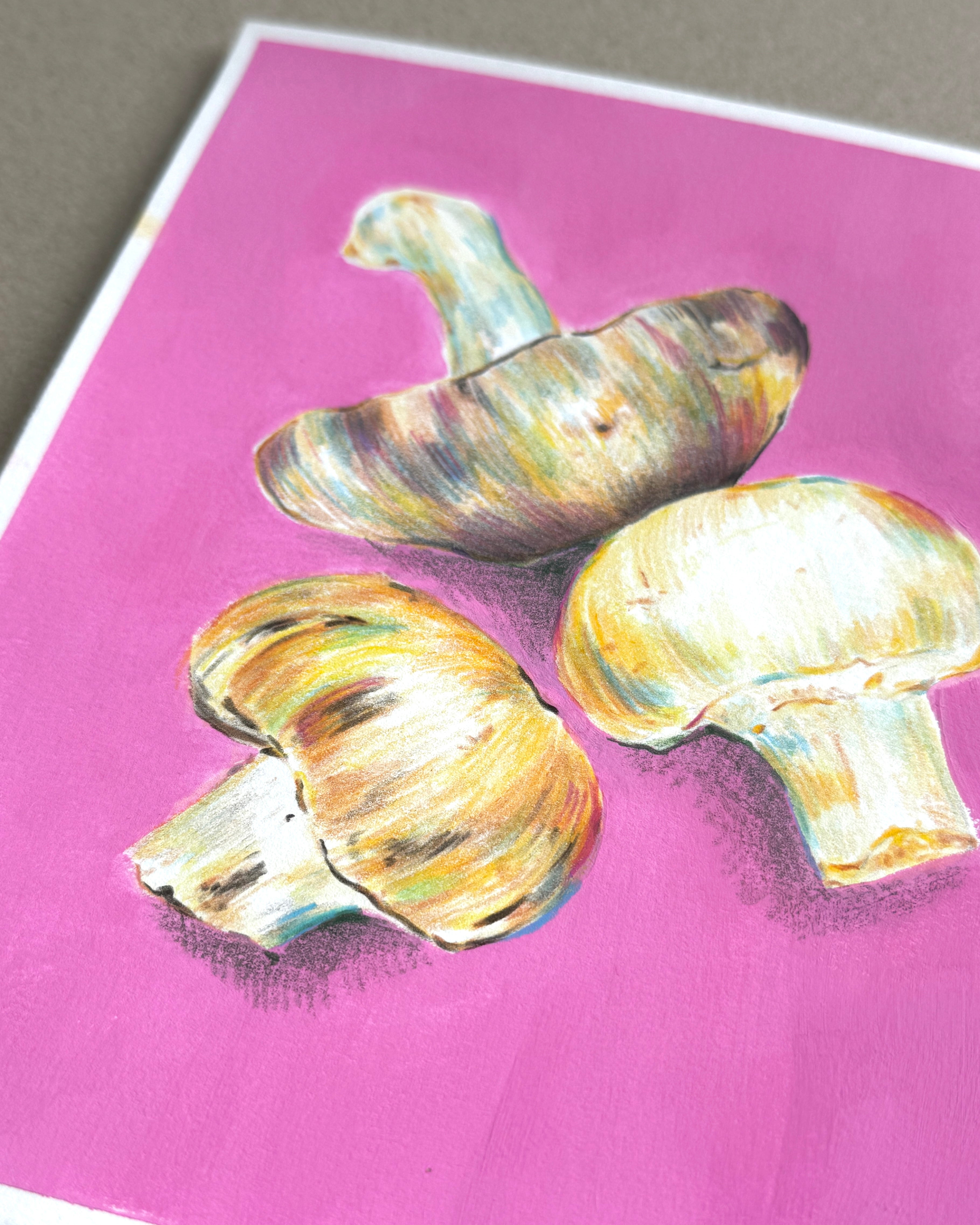 Mushrooms Gouache with Pencils Sketch