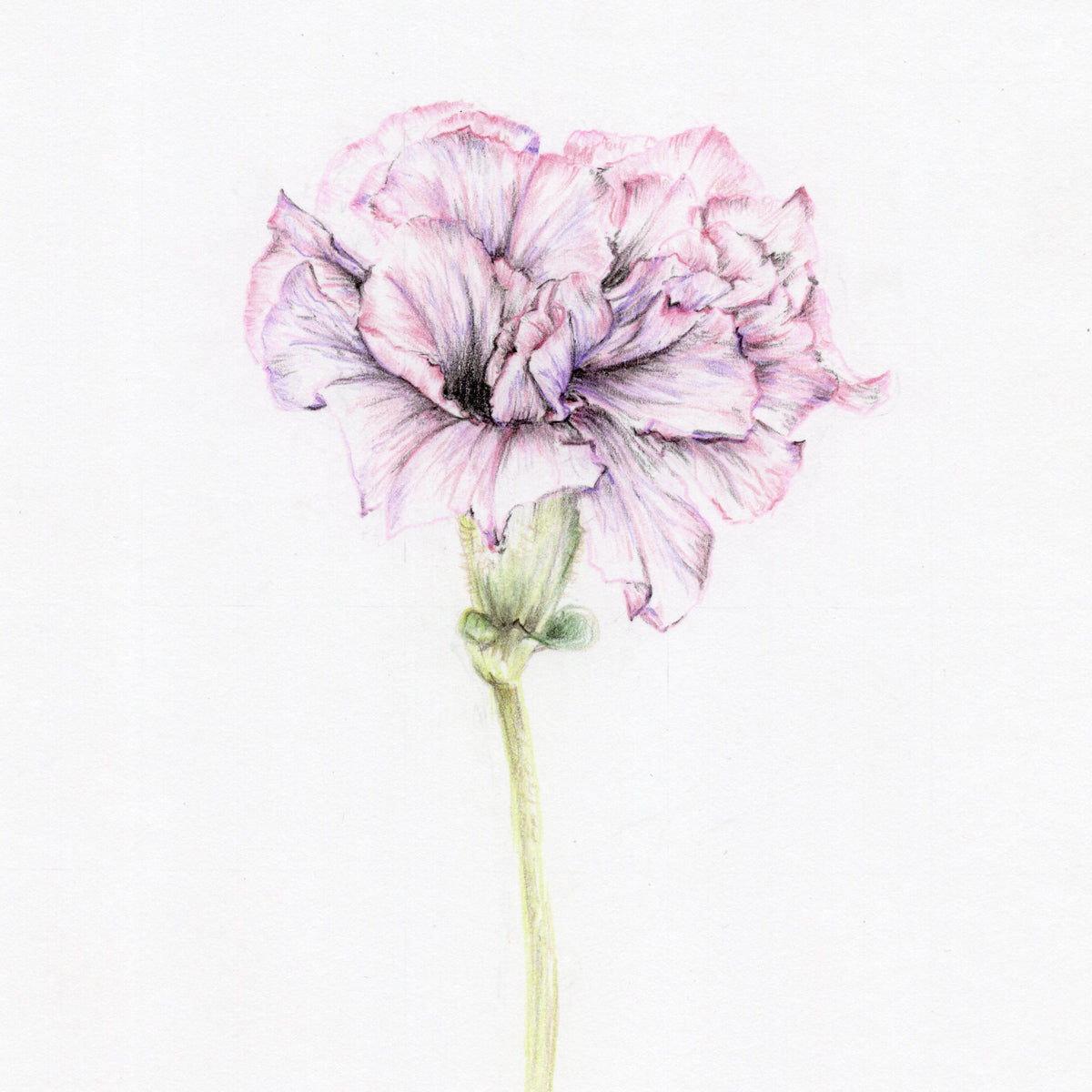 The meaning of petunias can differ depending on a person's intentions. Petunias can represent haughtiness, resentment and anger over something the recipient had done. In contrast, when petunias are given to a loved one, their pleasant appearance means the recipient's presence is soothing to the other person. This drawing is from the 100 Days of Flowers projected completed in 2015.