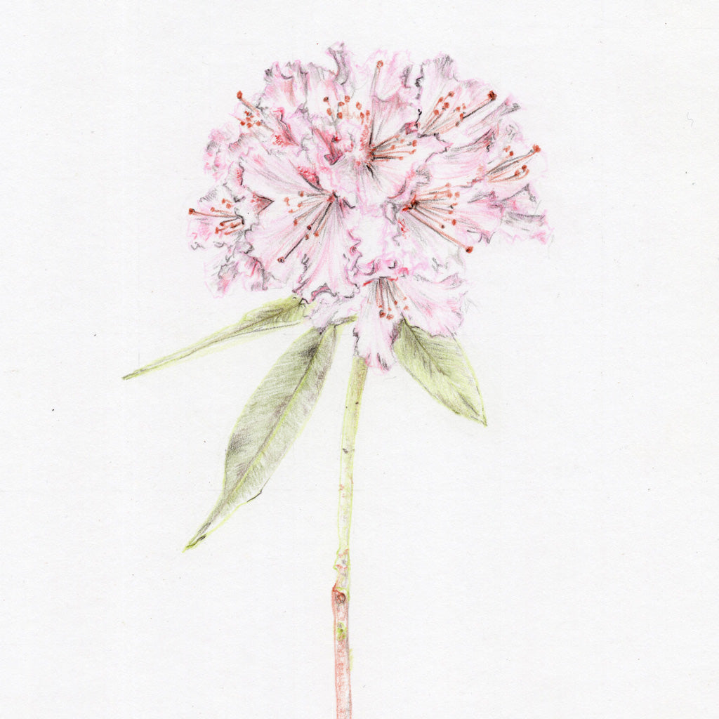 Original pencil drawing of a Rhododendron, this drawing is from the 100 Days of Flowers projected completed in 2015.